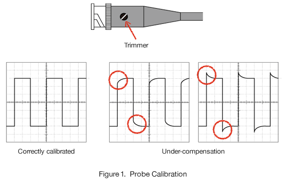There is a lot of information available explaining why oscilloscope probes need to be calibrated and the circuits that are used in probes, so I will not go into detail here. In any case, it should be evident to the reader that you will not receive a correct result if you measure a waveform with an uncalibrated probe (Figure 1).