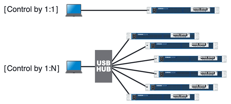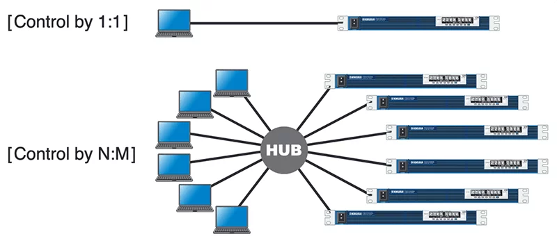 The PWX series is equipped with LAN, USB, and RS232C interfacesas standard features. By using the feature of virtual multi-channelbus (VMCB)*1, it allows you to control remotely and monitoringfor 1-to-N as well as N-to-M for large-scale networks.
