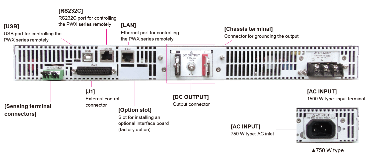 In particular,the LAN interface is LXI compliant, enabling you to easily controland monitor the power supply through a browser on a PC, smartphone,or tablet by accessing the web server built into the PWXseries.
